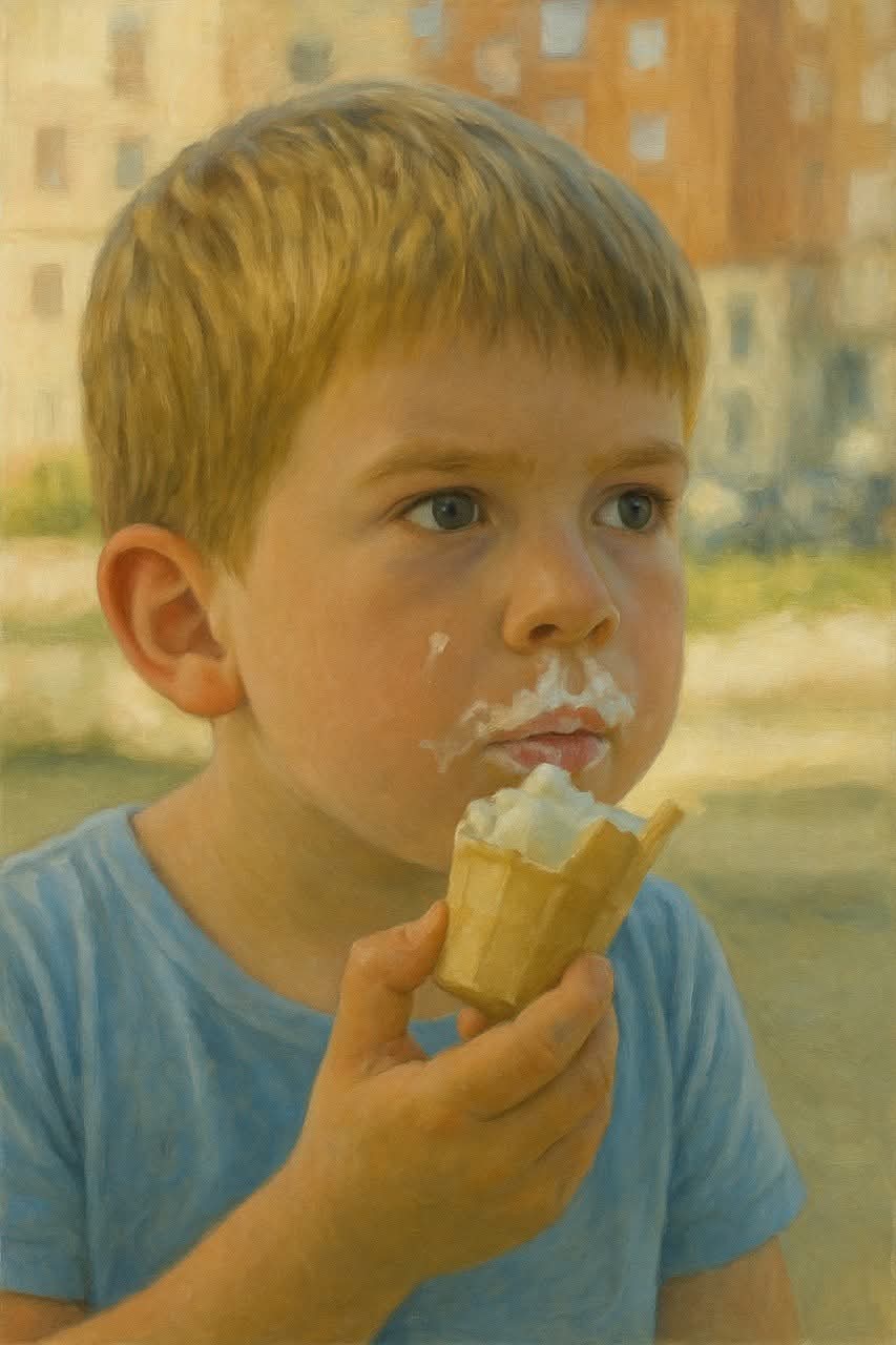 وجلس على الطاولة، فوضعت النادلة كأساً من الماء أمامه فسأل الصبي : بكم الآيس كريم بالكاكاو؟أجابته : بخمســة دولارات… فأخرج الصبي يده من جيبه وأخذ يعد النقــود التي معه ثم سألها مرة أخرى حسنا وبكم الآيس كريم لوحده فقط بدون كاكاو؟ في هذه الأثناء كان هناك الكثير من الزبائن ينتظرون خلو طاولة في المقهى للجلوس عليها , فبدأ صبر النادلة بالنفاذ فأجابته بفظاظه: بـ أربعــة دولارات فعد الصبي نقوده وقال سآخذ الآيس كريم العادي أنهى الصبي الآيس كريم ودفع حساب الفاتورة وغادر المقهى وعندما عادت النادلة إلى الطاولة إغرقت عيناها بالدمــوع أثناء مسحها للطاوله لقد حـىـرم الصبي نفسه من الآيس كريم بالكاكاو حتى يوفر لنفسه دولاراً يكرم به النادلة ذاتها.