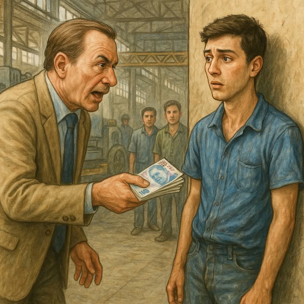بدون إجابة المدير أخرج محفظته وأخرج 500$ نقداً وأعطاها للشاب (بمثابة إنهاء الخدمة)