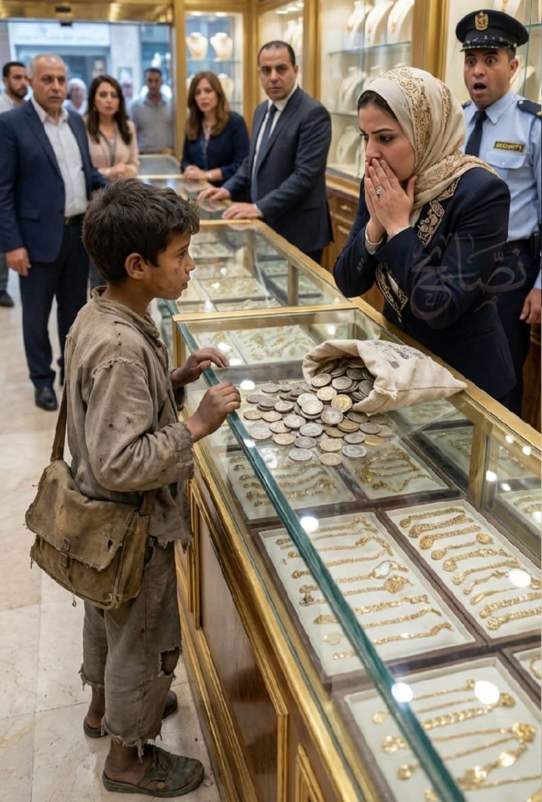 كان حارس الأمن على وشك طرده وهو يظن أن الفقر الذي يغطي جسد الطفل يعد تشويها لصورة المكان أمام الزبائن الأثرياء. لكن في تلك اللحظة توقفت المديرة فجأة لأن الكلمات التي نطق بها الطفل قبل قليل أسكتت القاعة بأكملها.